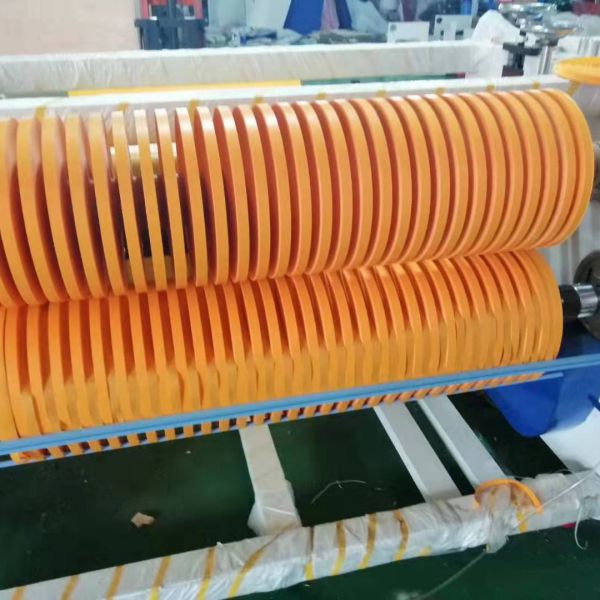 (2)鎢鋼刀,此種刀具脆性好,鋒利性好,一般用于對雙面膠等質地較軟的材料的分切。該刀具的分切精密性好,分切的過程中比較少出現毛刺、絲邊等現象。但該刀具對于比較硬的材料容易出現崩刀。且刀具成本相對較貴,一般廠家僅用來分切膠帶、PE膜、美紋紙等質地相對較軟的材料。